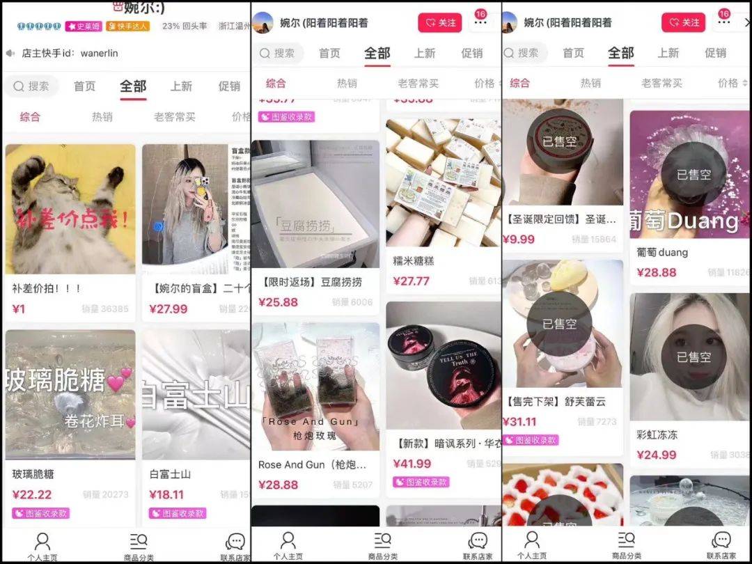 以快手达人@婉尔太酷惹 为例,她平常作为一位史莱姆博主在平台活跃,积累了一定的粉丝群体后,开始尝试自制史莱姆售卖。得益于账号强大的种草能力,不少粉丝对她的手工史莱姆表示感兴趣,每次开售都需要掐点“抢货”。