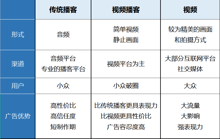 如今从音频到视频化,播客也许改变呈现形式,但无疑给品牌主带来许多营销增长空间,或许正是弯道超车的机会。