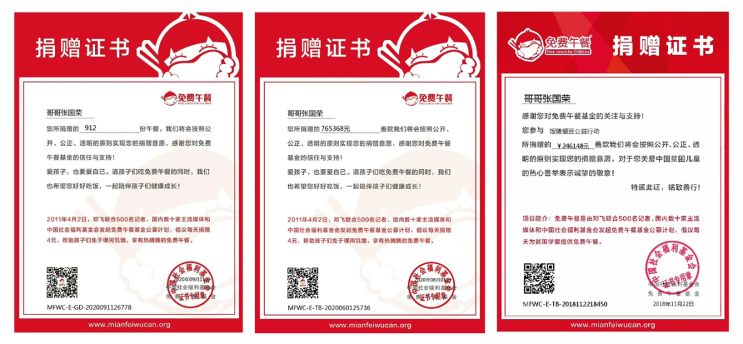 很多人可能不知道,张国荣的粉丝们在七年前就以偶像的名义,联合中国社会福利基金会,开始向有需要的学校、孩子捐赠免费午餐。如今,参与人次已超过7万,累计善款金额为176万元(截至4月3日)。所以对张国荣的粉丝来说,淘宝未尝不是一个传承偶像的慈善愿望、对孩子的爱的“公益平台”。
