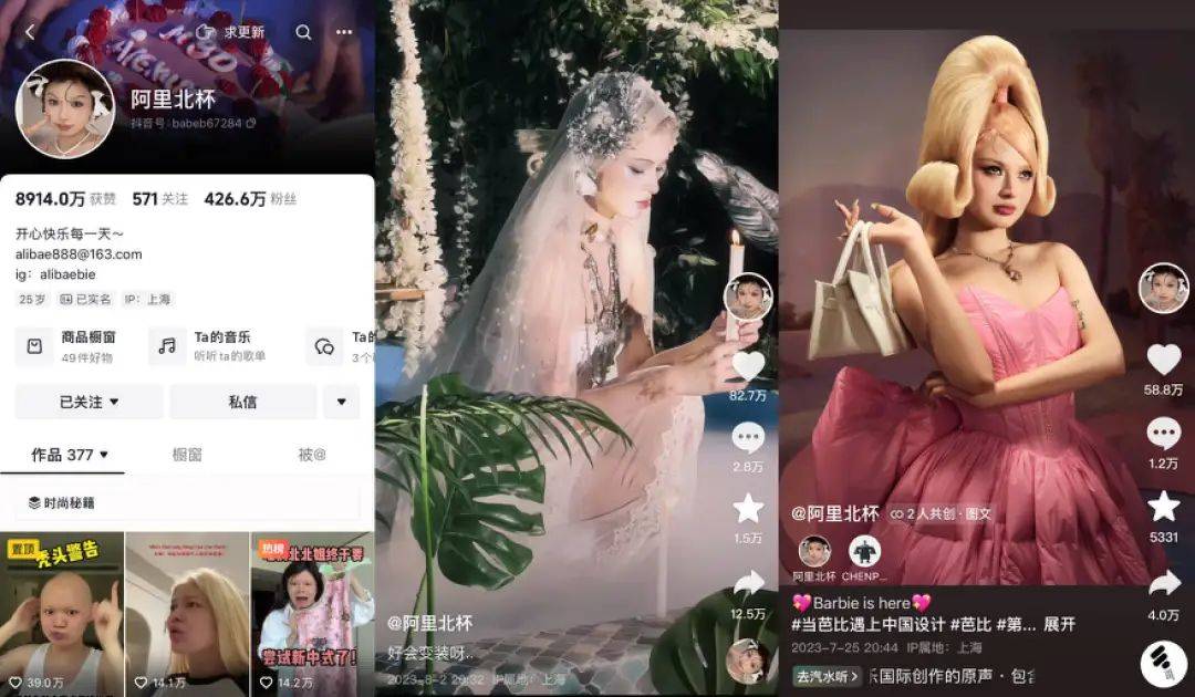 在视频里,博主本人会从不起眼的男生转变成各种类型的大美女,展现了鬼斧神工的妆发技巧,他还曾在视频中调侃,“毕竟我是美妆圈出了名的‘鬼娃’”。更重要的是,博主擅长结合热点和粉丝呼声做话题输出,比如在《芭比》热映后,发布了一系列芭比仿妆作品,视频点赞量均超过了40万;“落难千金重生”“彩虹卧蚕妆”等爆款妆容也有很强的代入感和记忆点。
