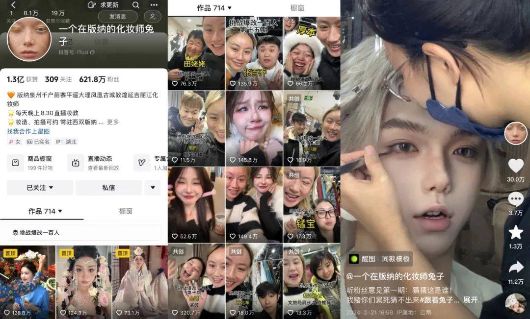 @一个在版纳的化妆师兔子 的出圈密码则是“爆改明星”,一年涨粉295.2万。