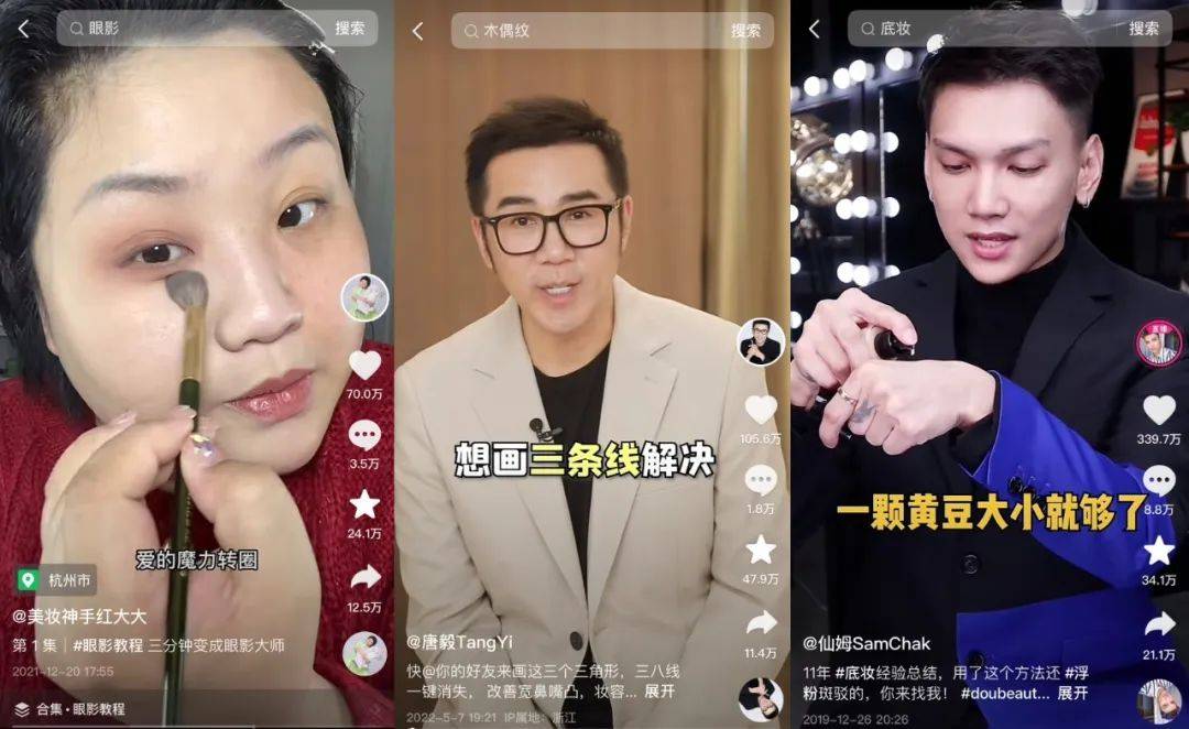 @美妆神手红大大、@唐毅TangYi、@仙姆SamChak 抖音视频截图