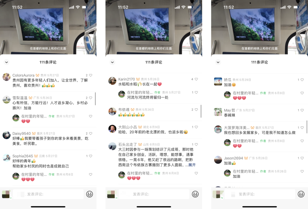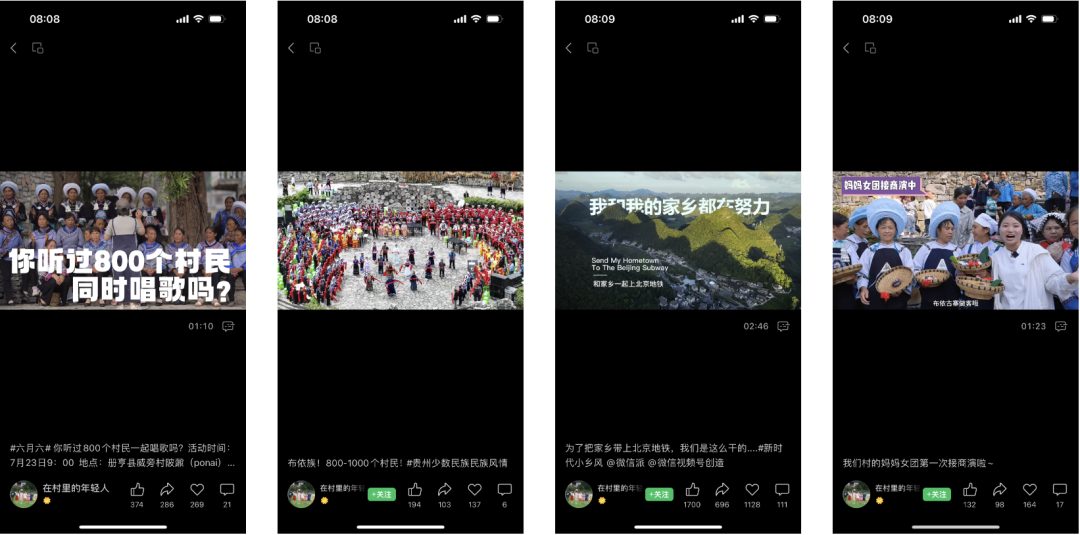 再往后,借着视频号的传播,越来越多人知道了陂鼐古寨,内容选题中也出现了年轻人们取得的成绩。从把家乡带上北京地铁,到迎接88个县(市)乡村振兴局领导考察参观,再到被央视专访报道,古寨里的村民们或许从来没有想过,自己祖辈生活的村子,有一天会闪闪发光。