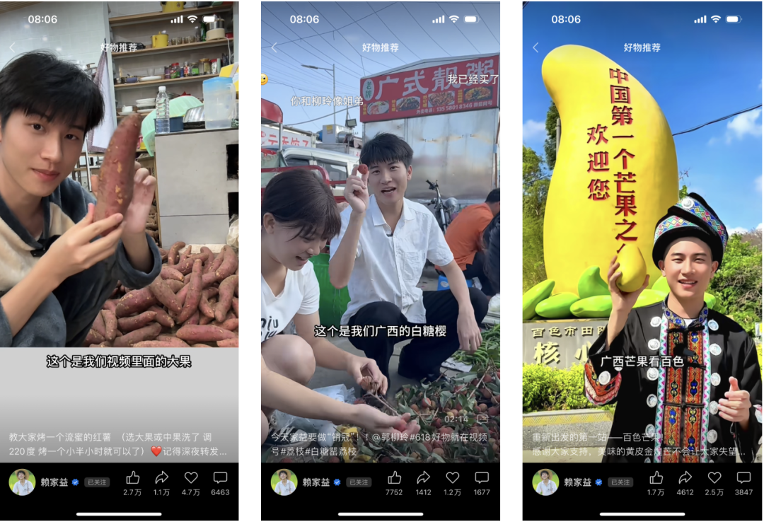 譬如赖家益,早年经历过大城市的繁华,却因一纸承诺毅然选择返乡教书,目前在广西北海市合浦县石湾镇任小学老师,坐拥70多万粉丝,课余时间带领当地村民将无人问津的红薯卖爆 40 万单;