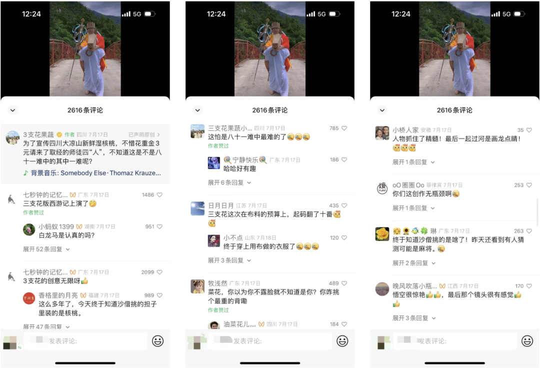 如此充满反差的内容,既让人眼前一亮,愿意停下来一探究竟,也让观众发出感叹:“3支花的创意无限呀”、“他们不论做模特还是跨界经商都是专职的”,甚至也有粉丝发出关心:“孩子们别感冒了,穿个棉衣吧!”