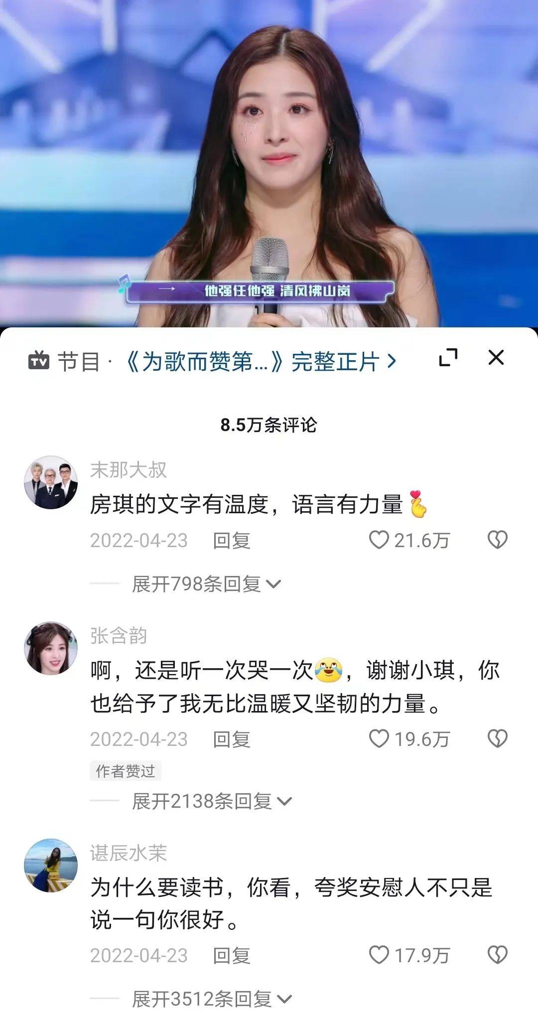她的话温柔又有力量,不仅让张含韵泪洒现场,让其他被点评的明星感到暖心、感动,更让看节目的观众如沐春风,用自己出色的文采治愈了所有遭受过恶意的人,也让大家认识到了读书的意义。