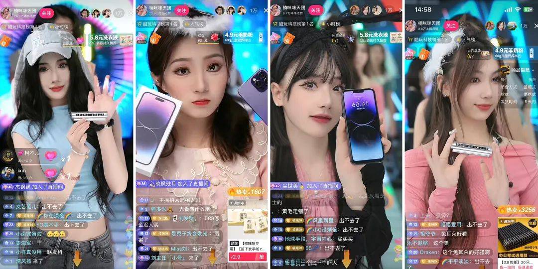 郑香香不是这个规则下唯一摸到流量阀门的人。像她一样,侧重制造场景亮点、同时以售卖低价商品为主、获取高GMV的直播间,还有@楠咪咪天团 。(美女走秀,扛起过亿销售额)
