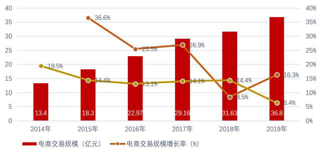 从电子商务行业的产业规模来看(图2),中国的电子商务交易规模逐年增加,但增量开始放缓,网上购物用户的增量放缓趋势更加明显。电子商务行业正逐步从增量市场向股票市场演变。