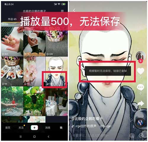经过测试,我们发现播放量在1500以下的视频,可能就保存不了了。不过这也只是猜测,至于对不对,你可以用别人的抖音账号(不要自己保存自己的视频),试试你的播放量在1500以下的视频能不能保存就知道了。