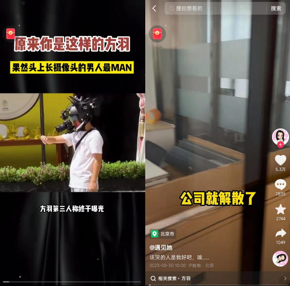 直到2个月后,账号终于有了动态,但内容不在是这个头顶摄像机的男人拍他的女友们,而变成了背后团队的合伙人。更让人诧异的是,这次粉丝们也不用对方羽换女友义愤填膺了,因为视频一开始就说“方羽走后,公司解散了”。