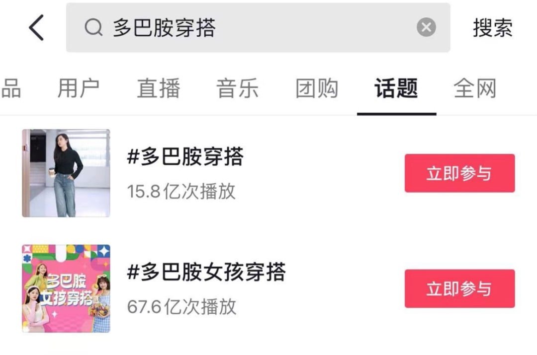 目前,抖音#多巴胺女孩穿搭 的话题已超 67.2 亿次播放,小红书上搜多巴胺穿搭话题,已有 54 W+ 篇笔记,是当之无愧的爆红话题。