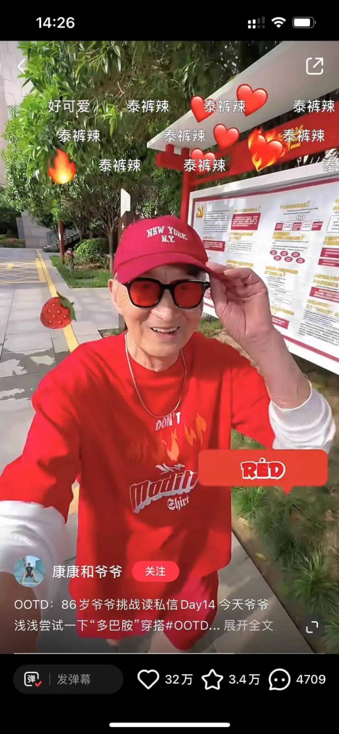 比如 @康康和爷爷,86 岁的爷爷挑战多巴胺穿搭,火遍全网,被称为“最潮爷爷”,B站 136万播放,小红书 31.7 万赞。除此以外,还有大量的网红达人、演员明星都迅速制作了多巴胺穿搭的视频,比如 1769 万粉丝的 @蔡萝莉,2874 万粉丝的 @痞幼 。
