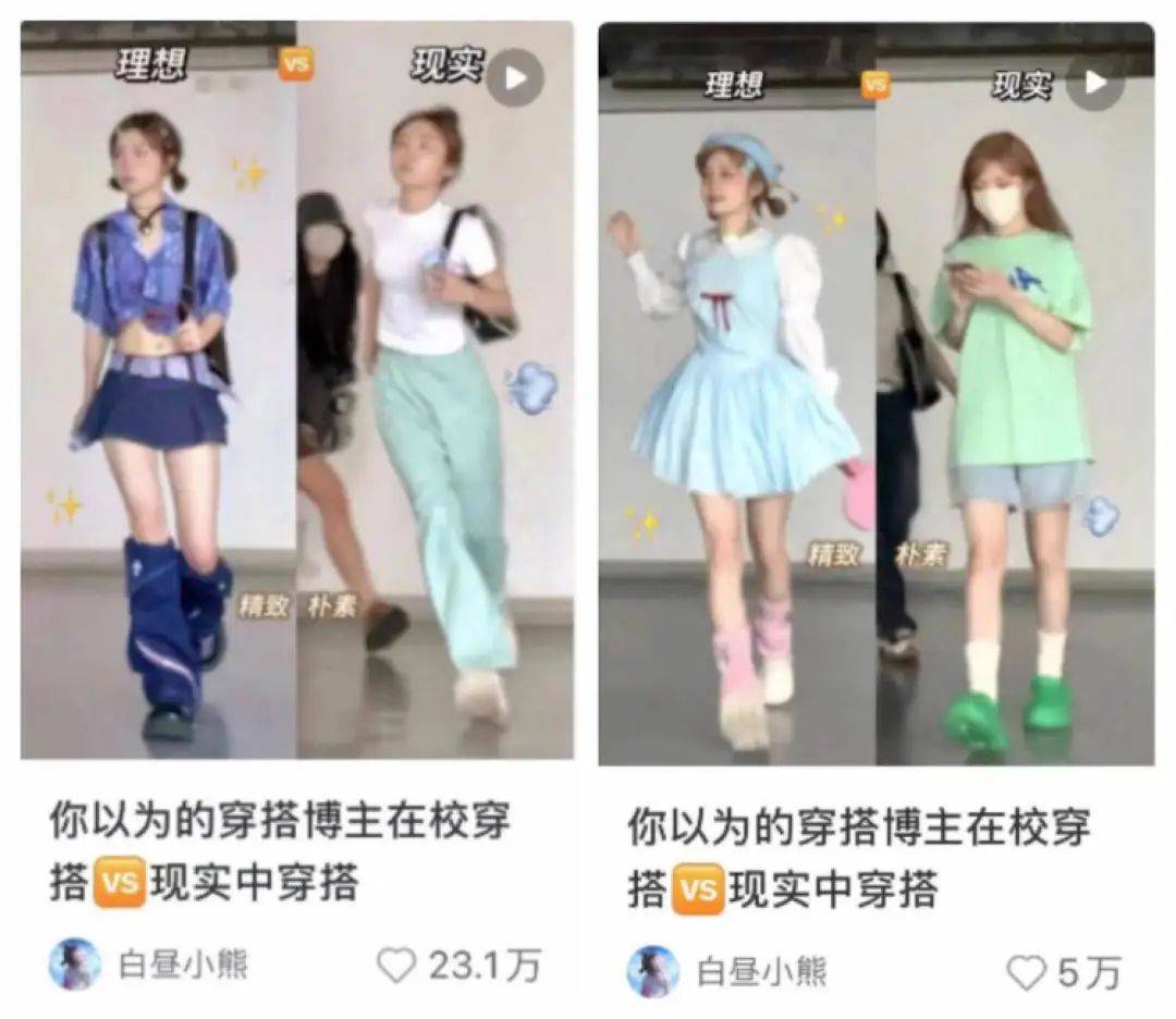 之前 @王七叶的躲闪摇,和现在 @白昼小熊的多巴胺穿搭,其实都是以「反差」作为基础内容的。