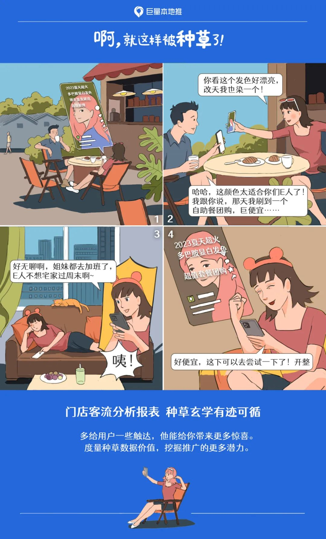 10家室外游玩行业的商家测试数据显示,门店的种草价值溢出率能达到288%。也就是说,如果有100人是购买团购券后到店消费,还有288人是到店咨询、未在线上直接下单的种草客流。