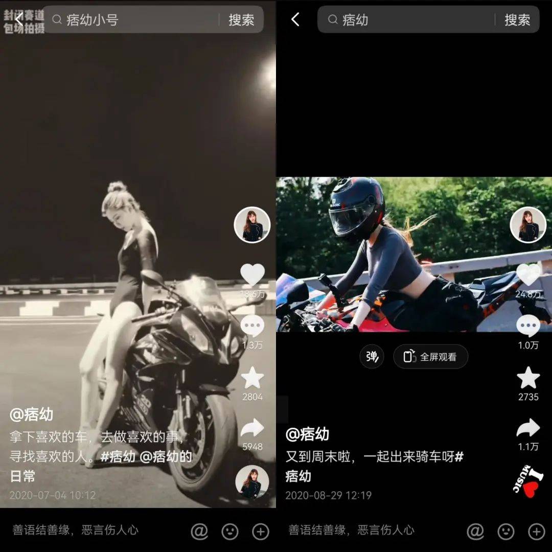 一辆粉黑配色的酷炫机车,配上一位身材火辣长相可爱的女性,“车+美女”反差感搭配,让痞幼迅速在互联网上爆红。