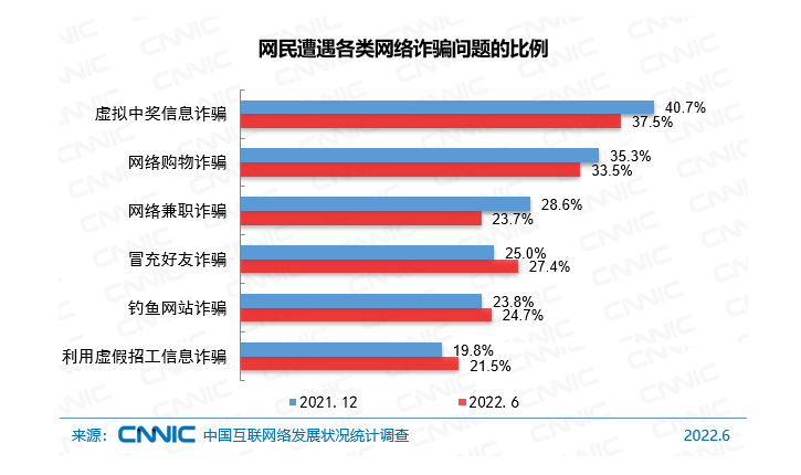 第 50 次《中国互联网络发展状况统计报告》显示,2022 年 6月,17.8% 的网民表示在上网过程中遭遇过网络诈骗。以全国 10.51 亿网民计算,超过 1.86 亿网民都曾遇到过网络诈骗。