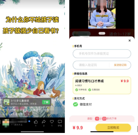 该视频案例标题为:宝贝12岁已经快读了200本书了,推荐xxx产品,现在9.9元就能学。在标题直接突出只需要9.9的卖点,受众用户看到这样低廉的价格,难免会点击进行了解。