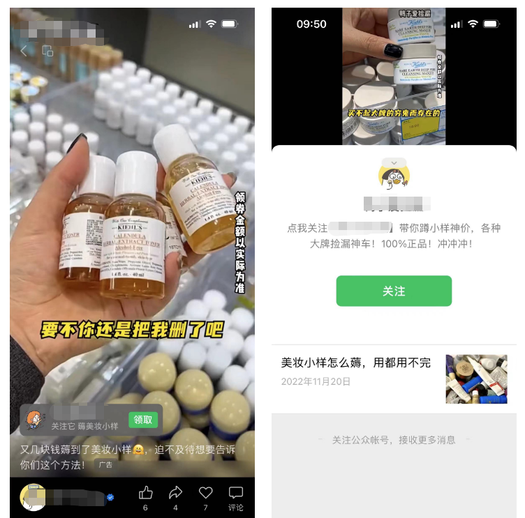 视频案例标题为:又几块钱薅到了美妆小样,迫不及待想告诉你们这个方法!,利用“薅羊毛”的消费心理,直击用户痛点。