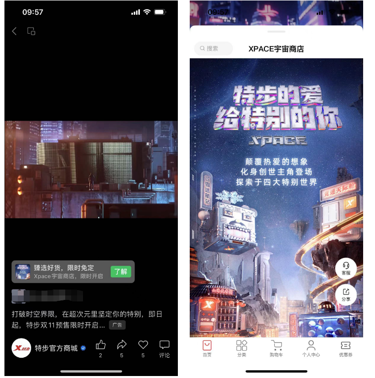 该案例为特步品牌广告,主要目的为沉淀到自己的小程序。