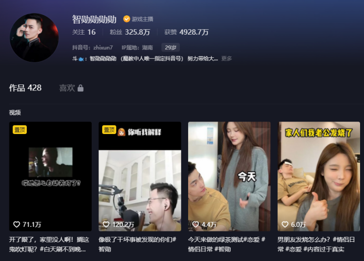 还有在抖音拥有300多万粉丝的“智勋勋勋勋”,英雄联盟人气颜值男主播,俊朗帅气的外形,与明星霍建华极为相像,被称为是“电竞霍建华”。在成名之前,智勋已经成为了一名主播,只是人气并不高,在参加了一档电竞综艺节目之后,很多网友和观众都因其长相酷似当红明星霍建华而开始关注他。