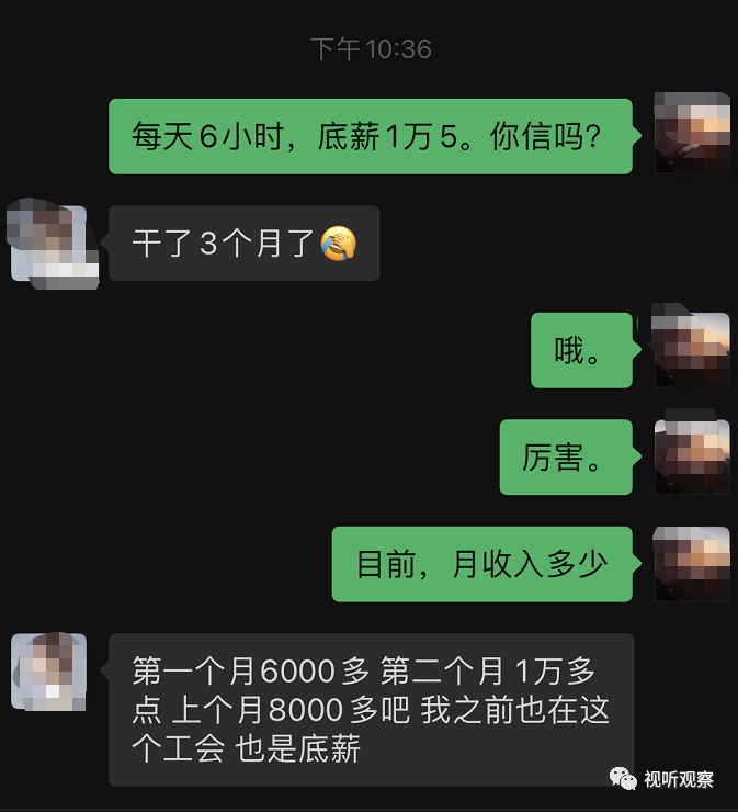 主播回答说:第1个月6000多,第2个月1万多点,上个月8000多吧,我之前也在这个公会也是底薪。