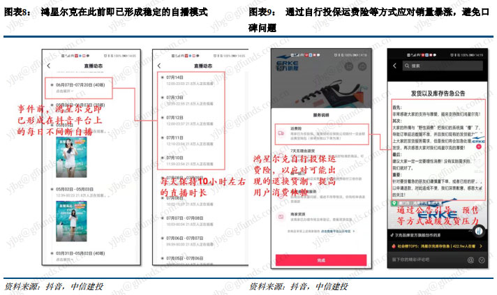 鸿星尔克事件产生的短期 GMV 增长得益于品牌通过捐款所带来的口碑,以及支持国货的消费者心理。从长远来看,达人/明星无法直接为品牌方沉淀粉丝,头部有带货能力的达人/明星对品牌方议价能力过强。自播可以为品牌方积累粉丝和私域流量, 实现粉丝复购和销售转化。