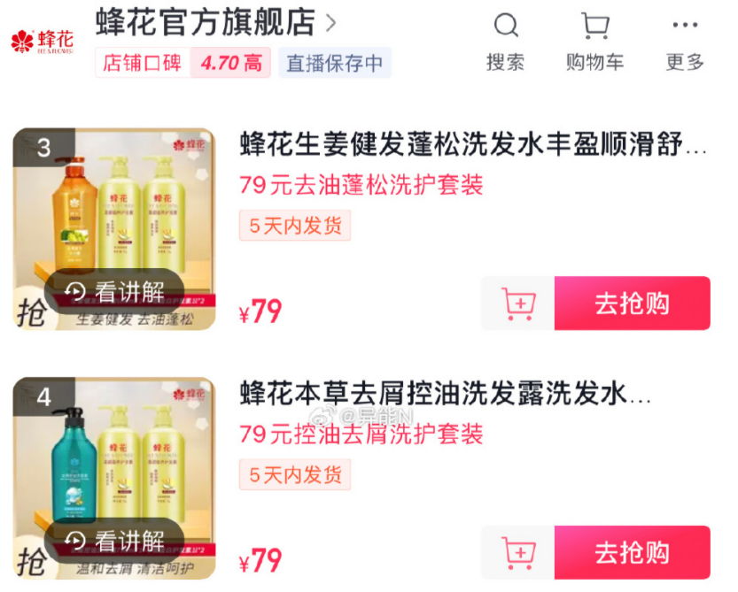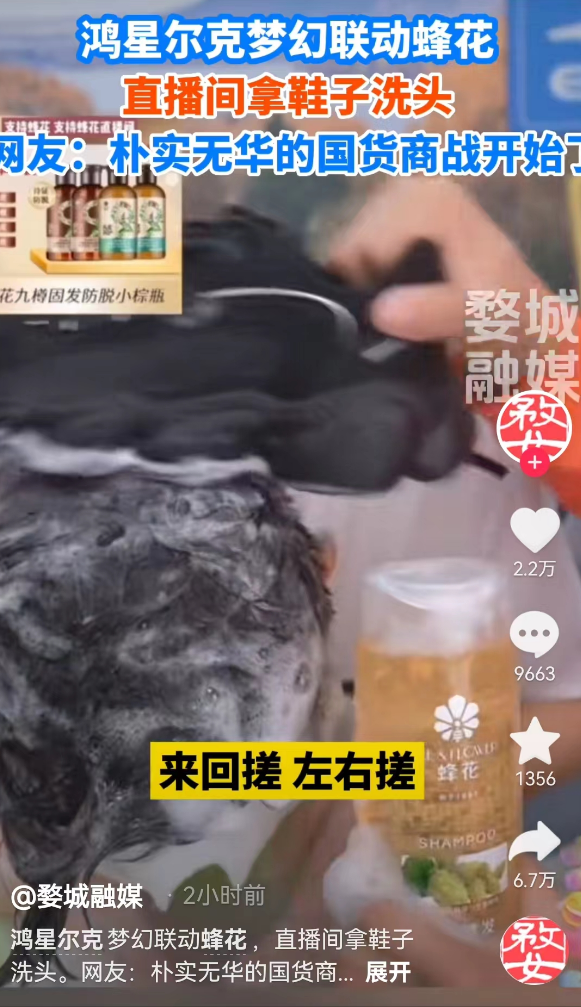 其它国货这几天跟着蜂花老大哥,开始认真工作,在直播间上79元套餐、用鞋洗头,评论区到处串门团建......处处洋溢着过年的氛围。