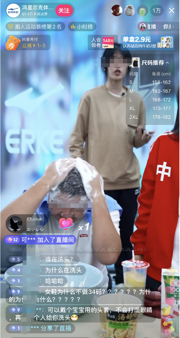 起床起猛了,看见鸿星尔克直播间,直播拿鞋用蜂花洗头(第一次看到原来还可以用鞋来洗头),放着蜜雪冰城神曲“我爱你你爱我”,桌上摆着白象、汇源,还以为走错片场了,这恐怕才是销售界天花板!
