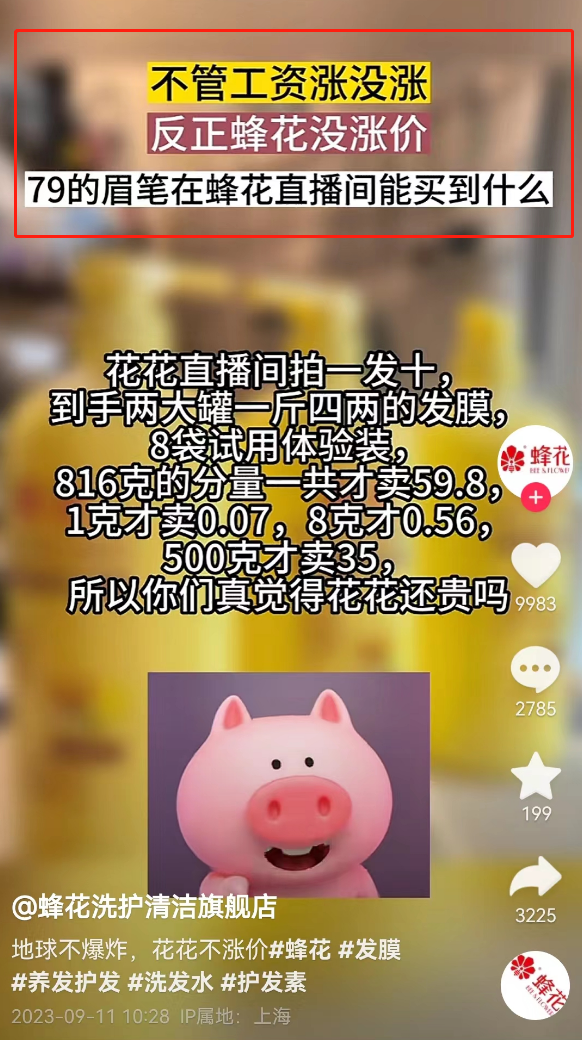 还专门发了个“79眉笔在蜂花能买到啥”视频,直言“不管工资涨没涨反正蜂花没涨价”。