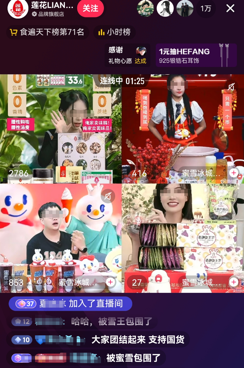 蜂花卖断货开始卖鸿星尔克,国货们——蜂花、蜜雪冰城、莲花味精还连麦......一个画面要素过多了,这究竟是什么大乱炖!真是好笑又感动。
