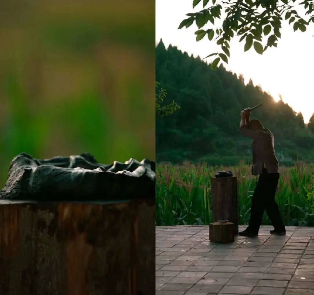 打墨时,视频中只有一声声的捶打声,一阵阵的蝉鸣声,以及大概只有“山白”能听到的汗水滴落的声音。