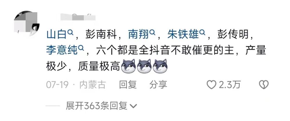 第二,同质化问题。目前来看,这类博主虽然仍处于数据增长期,但当越来越多同质化内容出现后,势必会分流用户的关注。举例来说,由于内容风格颇为相似,部分网友猜测“彭传明”“彭南科”“山白”来自同一家公司,这种“批量制造感”可能会消磨用户的兴趣。