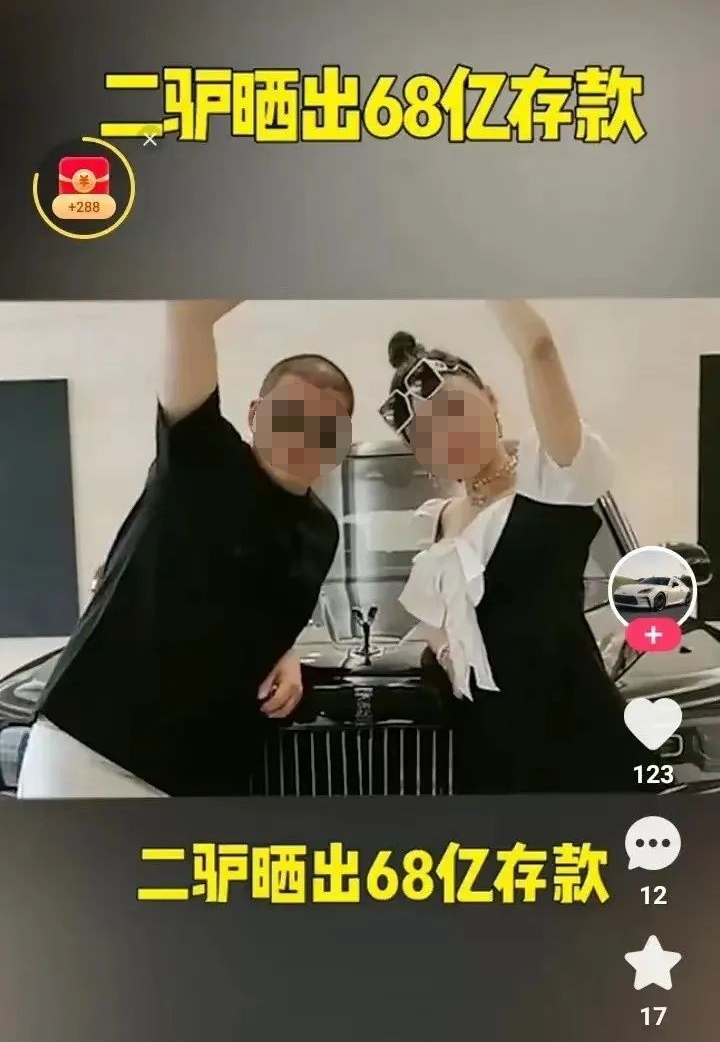 通过直播带货乍富后,二驴的炫富更是“壕”无人性:晒豪车豪宅那都不是事,还经常把成捆的钱摆满直播间、冰箱。