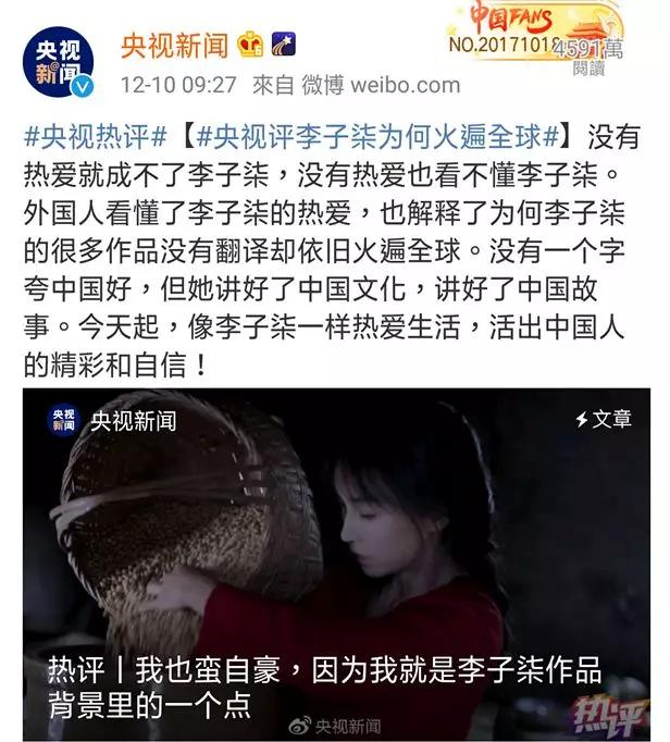 有人说,李子柒担当中国“文化输出”责任或许偶然,但这种国家崛起背景下就是必然。文化类短视频也需要使命,那就是“集众人之力,负文明之重,让传统文化回归到日常交流实践中”。