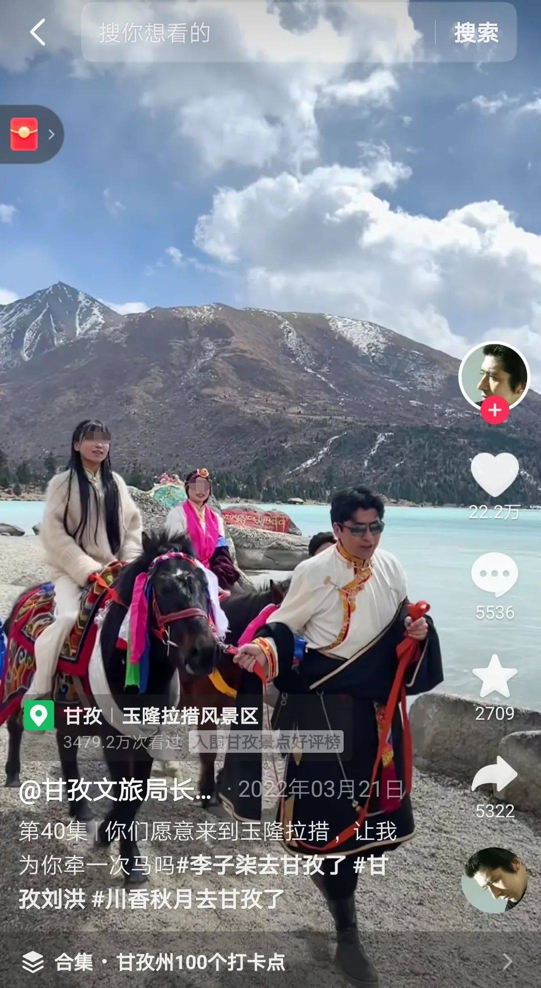 2022年3月,李子柒参加了四川甘孜州的公益活动“春风送暖·点亮美丽乡村”。同样参加活动的甘孜文旅局长刘洪,兴奋地发了两条和李子柒有关的抖音视频。