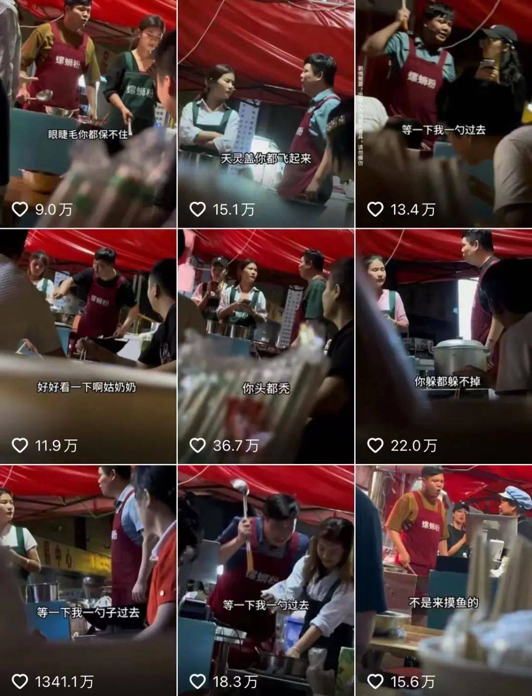 路人视角的镜头下,螺蛳粉摊主对着年轻女员工一顿暴躁输出,吐槽为什么要将摊位的灯换成声控的,导致下厨时错误不断,一边抱怨一边还不忘高喊“哦吼”点亮声控灯。