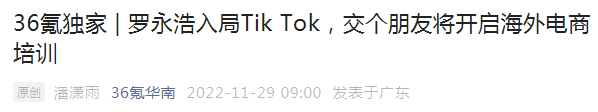 11月29日,据36氪独家消息,罗永浩联合创立的“交个朋友”正布局海外电商Tik Tok。