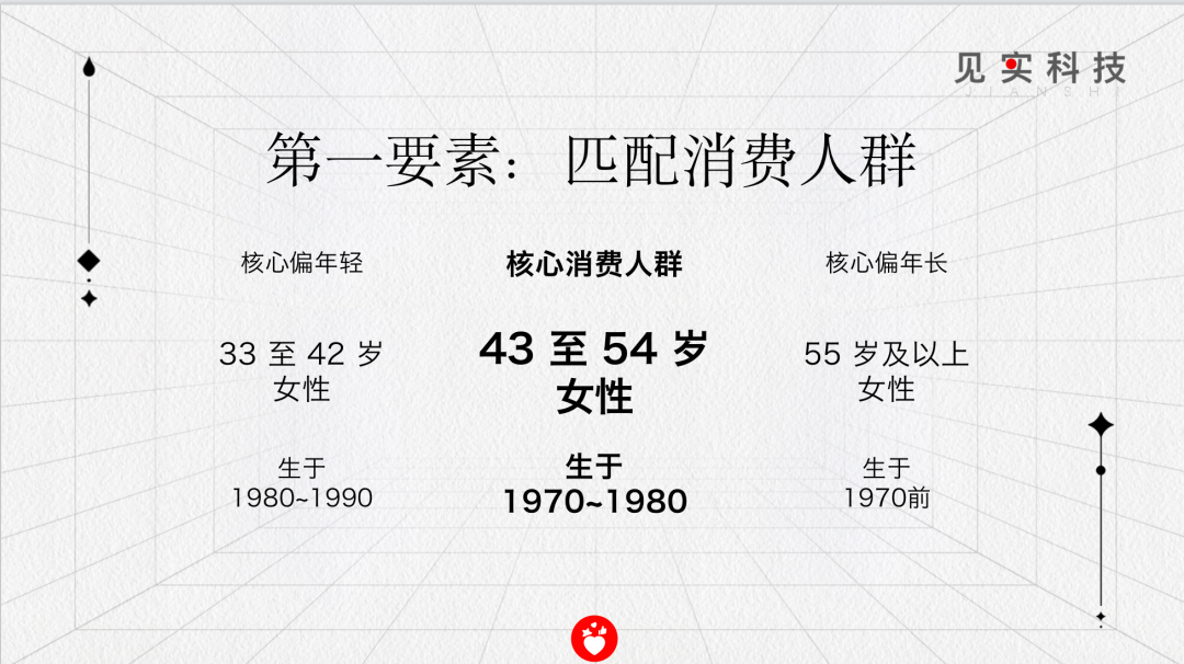 再往下看,33-42岁的女性人群也是一个重要人群。比如33岁这个人群的孩子年龄在3岁左右,已经能够腾出一些精力,所以这个人群的需求也是非常重要的。