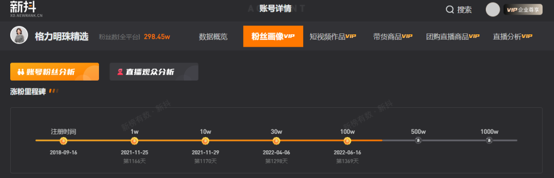 新抖数据显示,“明珠羽童精选”抖音号正式运营4天粉丝量就突破10万,七个月后粉丝量突破百万。在两年内,“明珠羽童精选”一共收获了298万粉丝。