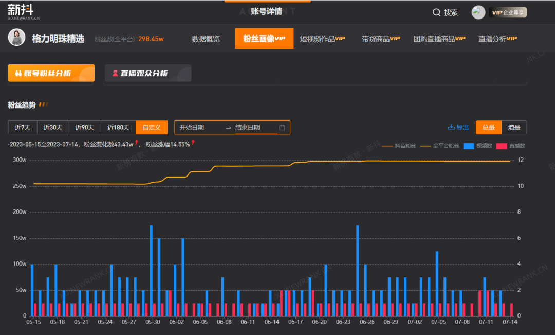 直观的表现之一是,新抖数据显示,“格力明珠精选”近两个月依然有43万的增粉。