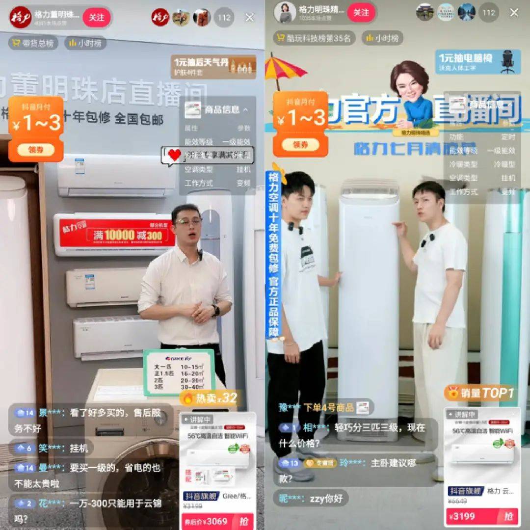 新抖数据显示,今年6月,“格力董明珠店”位列家用电器品牌自播排行榜的第三位,前有海尔,后有美的。