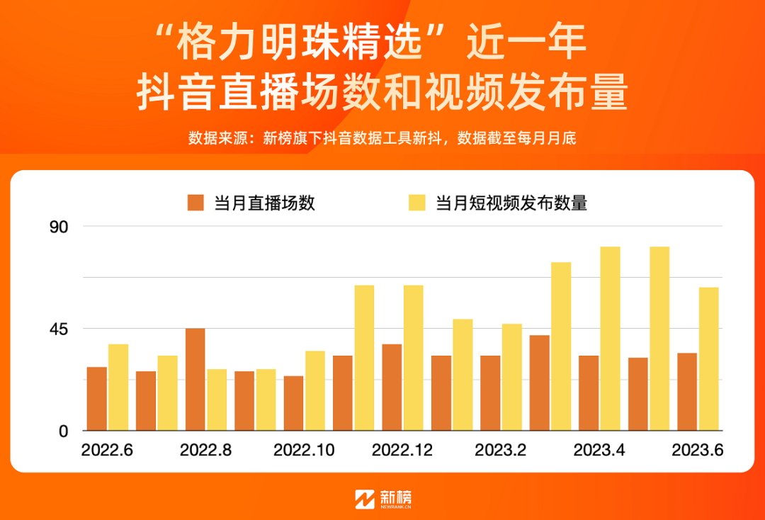 此外,“格力明珠精选”近一年每月平均直播场数达32场,保持着每天开播,将品牌自播作为了日常销售渠道。