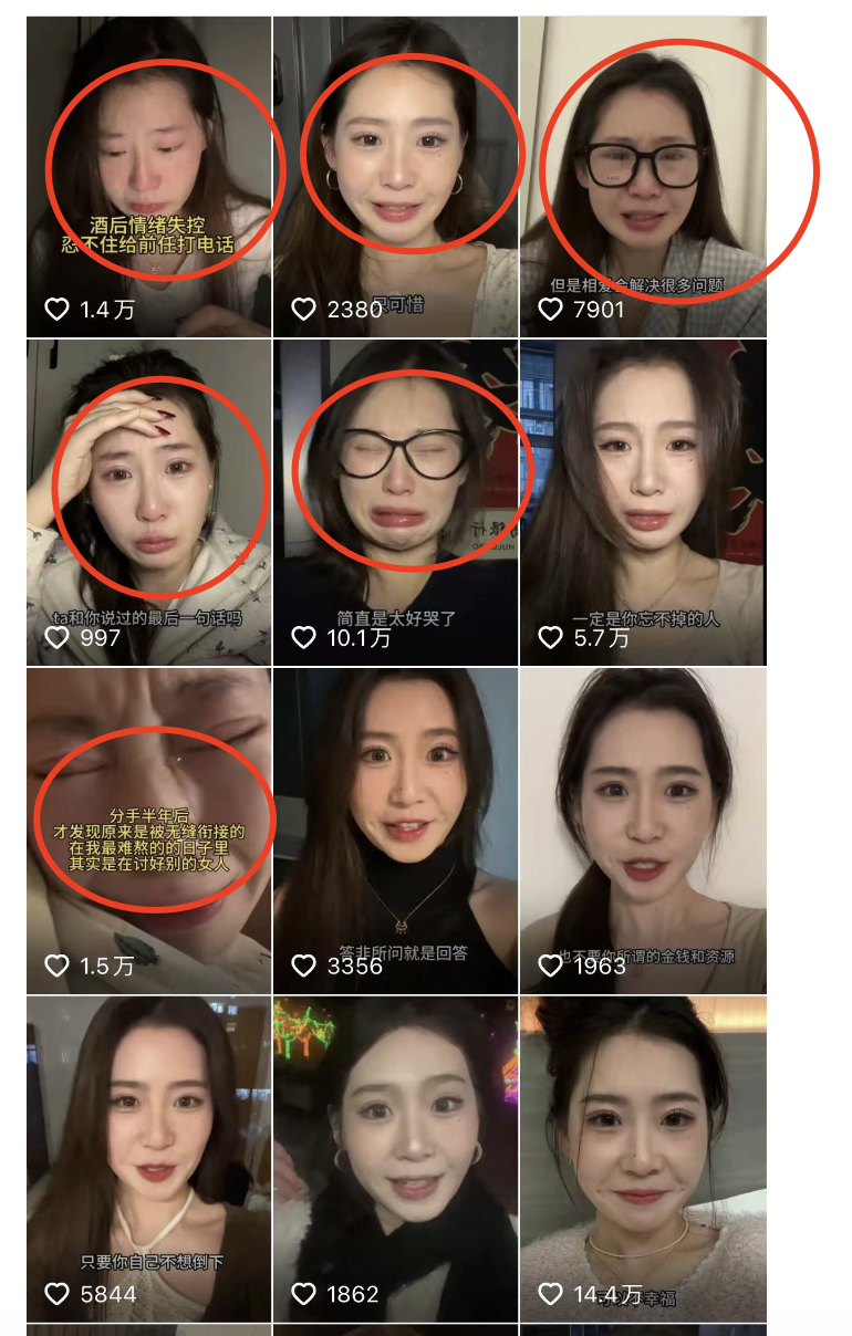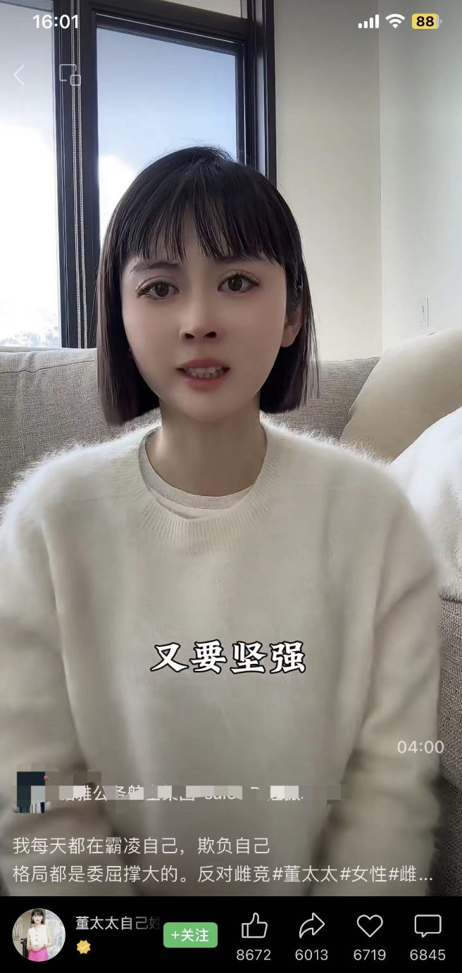 不光是董太太,甚至还有不少创作短视频的博主,有大量篇幅的“哭”,比如——