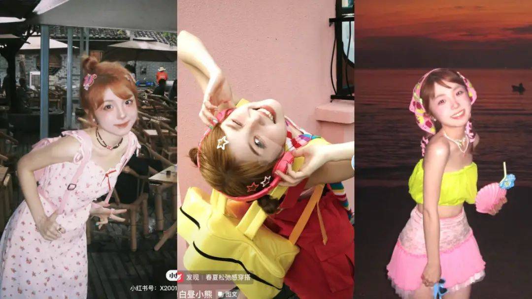 “白昼小熊”(下文简称“小熊”)是一个00后女孩,是深圳大学视觉传达设计专业的学生,在多巴胺穿搭走红前已经做了3年的时尚穿搭博主,也发布过“眉上刘海”、“奶茶变装”等多条爆款内容。