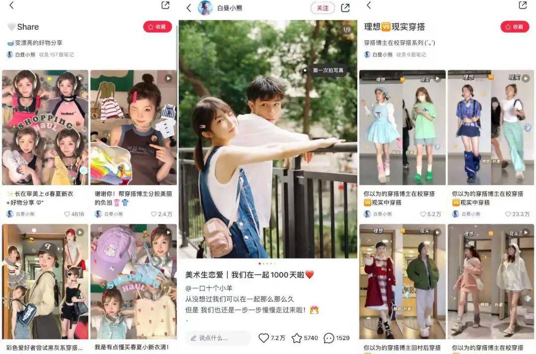 小熊本身是个喜欢记录生活的人。早期她分享与男朋友的恋爱过程和日常,到后来,她发布内容主题越发丰富,有恋爱、有日常vlog、也有穿搭,形式也从图文向视频慢慢过渡。