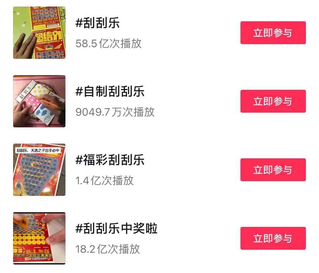 曾几何时,作者认为刮彩票只是属于部分群体的小众爱好,但在抖音上,话题#刮刮乐 的播放量已经超过58亿次,延伸话题#刮刮乐中奖啦 的播放量也有18亿次。