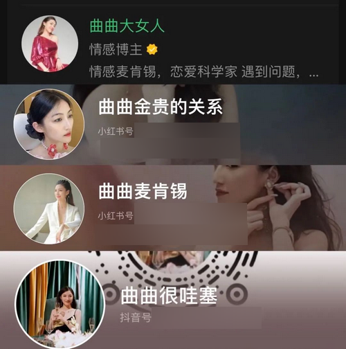 在此之前,曲曲的抖音、小红书、微博等账号都已被封禁,据微博公示,其账号被封的原因是“多次宣扬不良恋爱观博取热度,并借此贩卖课程谋取私利,传递错误价值导向”。