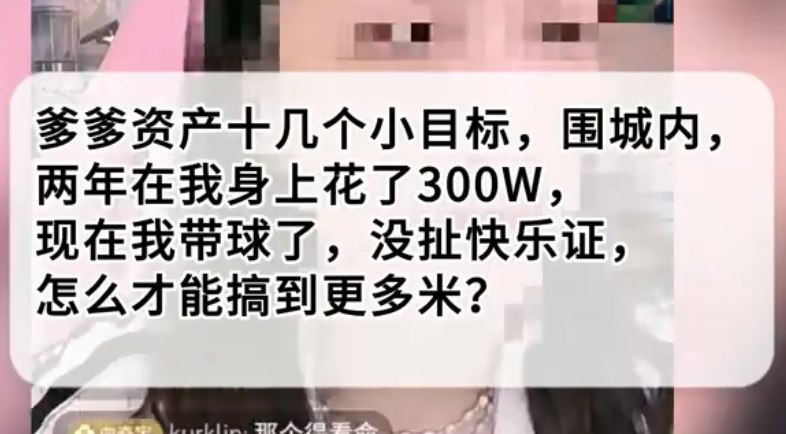 爹爹资产十几亿小目标,两年为我花了300w,现在我带球,没扯快乐证,怎么才能搞到更多米?