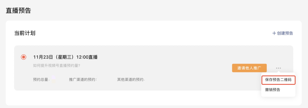 创建路径:视频号助手官网-直播管理-直播预告-邀请他人推广