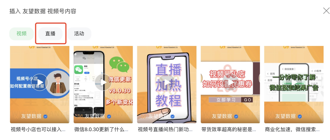以友望社群直播预告为例。